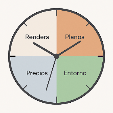 Es un proceso narrativo: una historia visual donde el asesor guía al comprador a través del proyecto para mostrarle cómo podría vivir ahí.