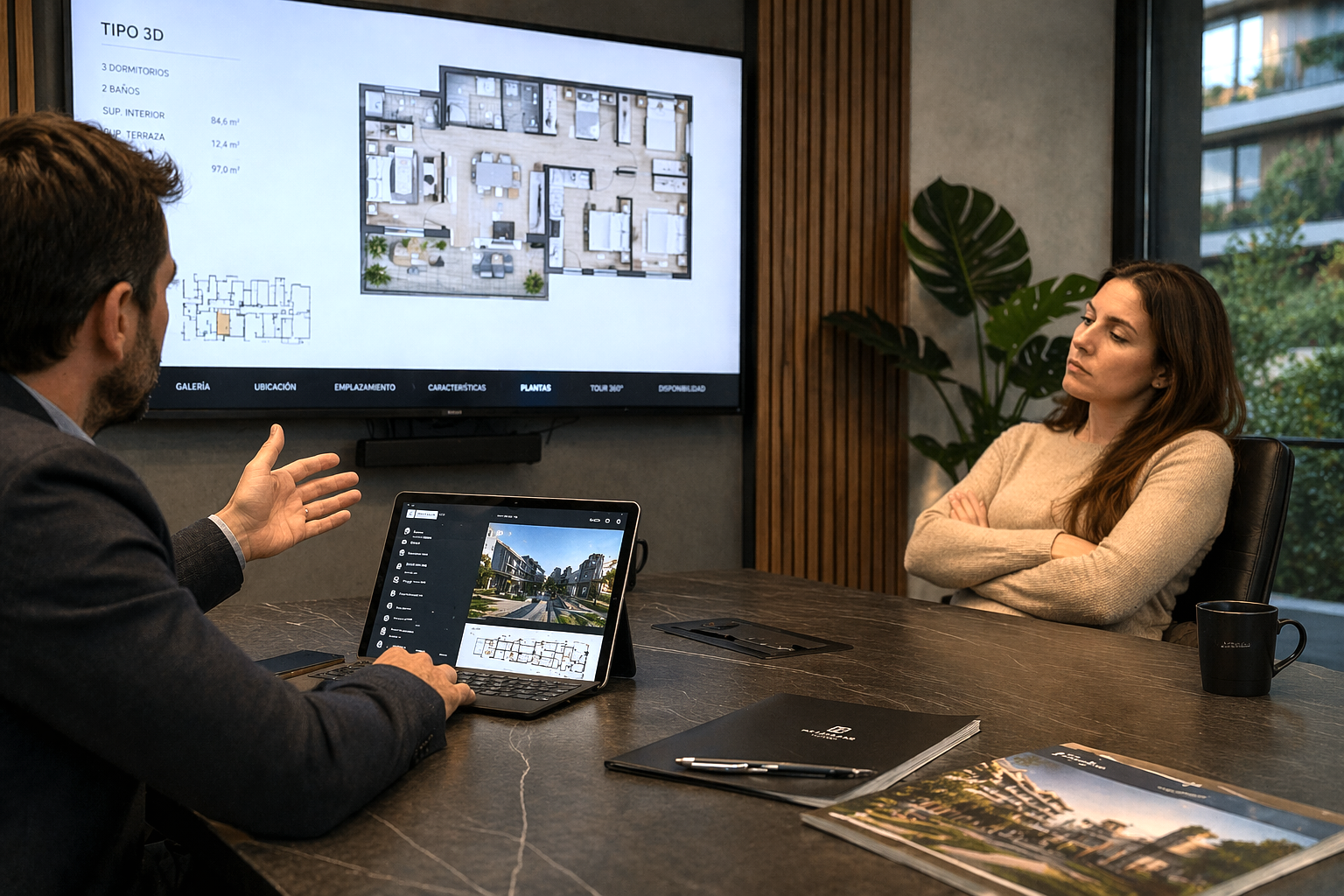 En la práctica, la mayoría de las presentaciones se construye en tiempo real. El ejecutivo no parte desde un sistema ordenado, sino desde material disperso: renders en carpetas, planos en otra ubicación, PDFs enviados por correo, links guardados, versiones duplicadas o desactualizadas.