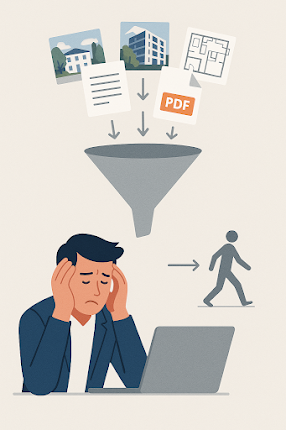 La mayoría de los desarrolladores cree que un sitio web cargado de información resolverá el problema. Plantillas con fotos, videos, planos descargables, ficha comercial, hasta la promesa de compraventa en PDF.