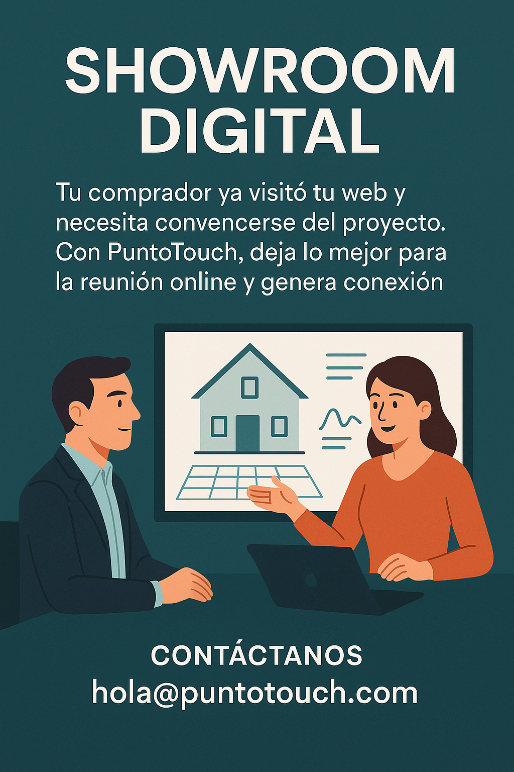 Con PuntoTouch, los equipos inmobiliarios transforman cada reunión online en un escenario de ventas real, donde la tecnología potencia lo humano y convierte la información en experiencias memorables.
