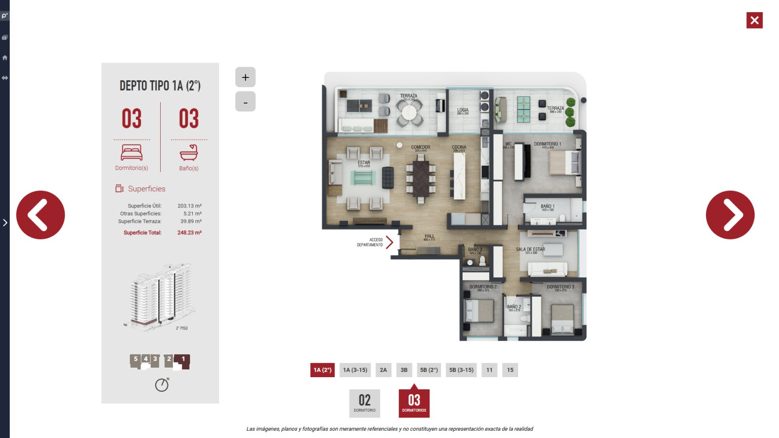 En versiones anteriores, las imágenes se organizaban en tres galerías fijas: Entorno, Proyecto y Departamentos.