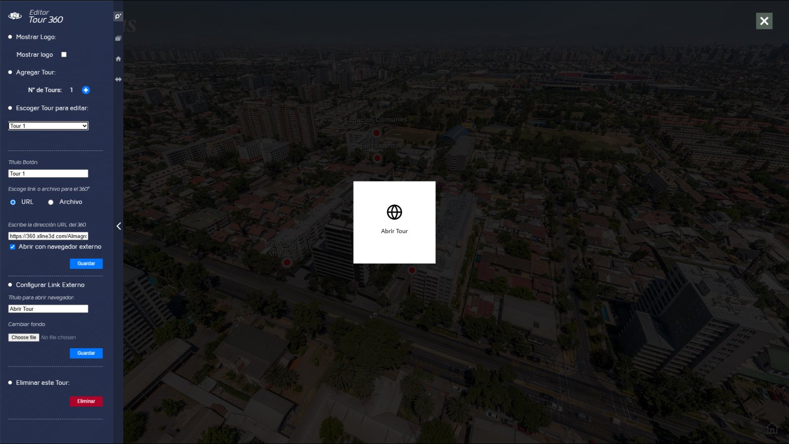 Al abrir un tour externo, ahora puedes personalizar la pantalla: añadir fondo,