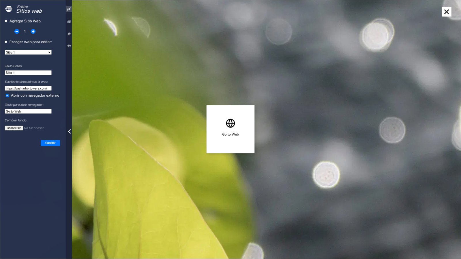 También es posible personalizar la vista cuando se abre un sitio externo: elegir colores, mostrar el logo del proyecto o incluir mensajes interactivos. Así, aunque el usuario vea contenido externo, sigue dentro de una experiencia cuidada y profesional.