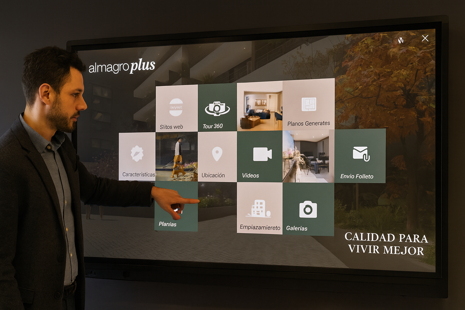 PuntoTouch nació en el mundo inmobiliario, pero su arquitectura está diseñada para adaptarse a cualquier tipo de showroom interactivo. Desde empresas de materiales de construcción, pisos y revestimientos, hasta muebles, iluminación o equipamiento industrial, cada sección de PuntoTouch puede transformarse para mostrar productos de forma visual, ordenada y envolvente.