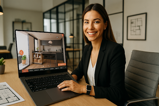 Las Galerías pueden navegarse deslizando con el dedo (en pantallas táctiles) o utilizando el mouse, lo que las hace aptas tanto para salas de ventas presenciales como para presentaciones virtuales.