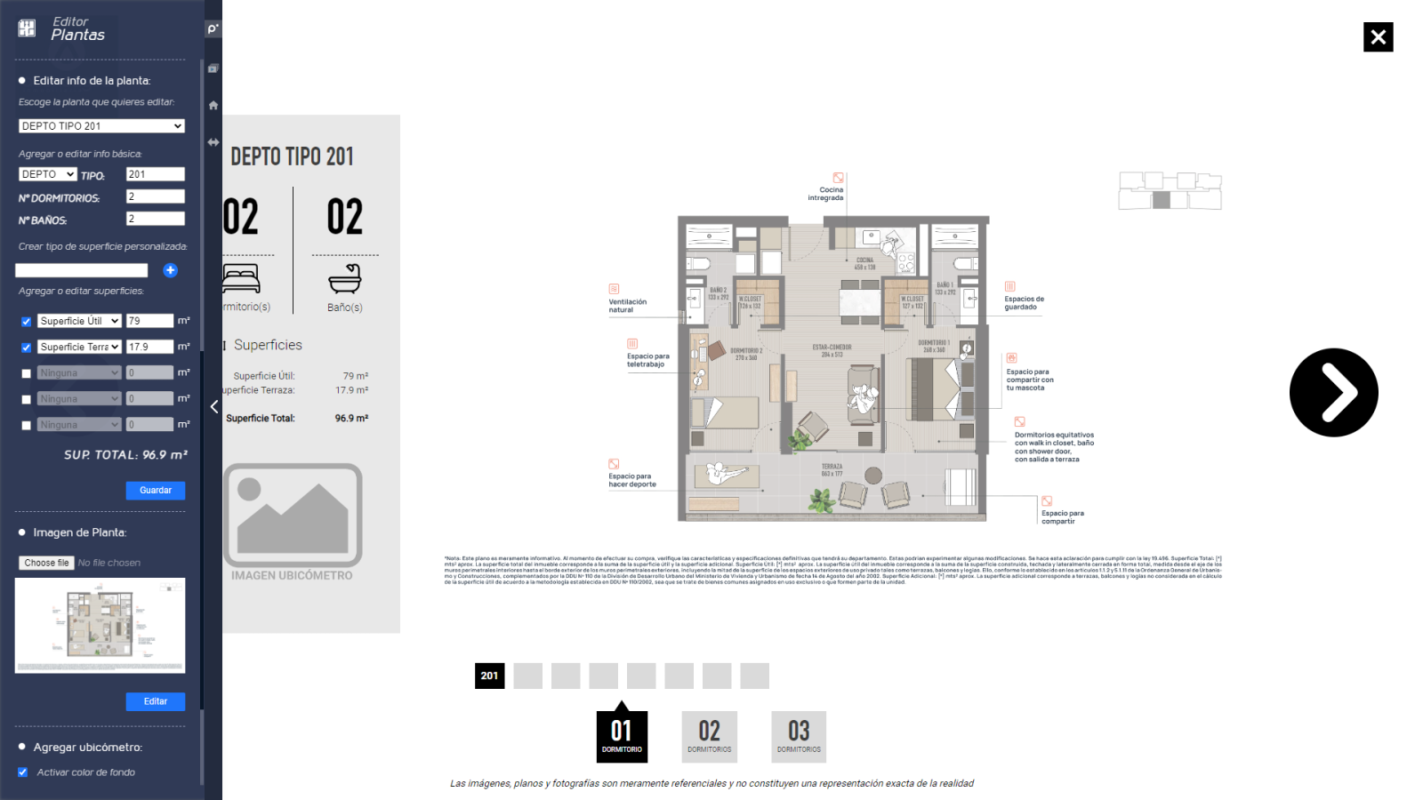 Con un solo click, accede a la planta exacta, con su nombre, tipología y toda la información lista para mostrar.