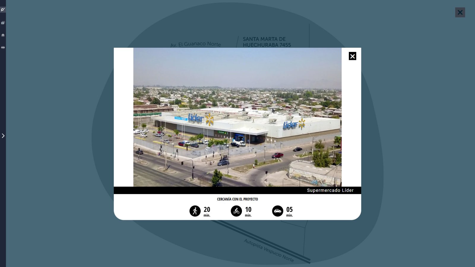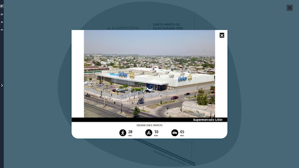 Y lo más importante: la distancia al proyecto, personalizada según el medio de transporte: